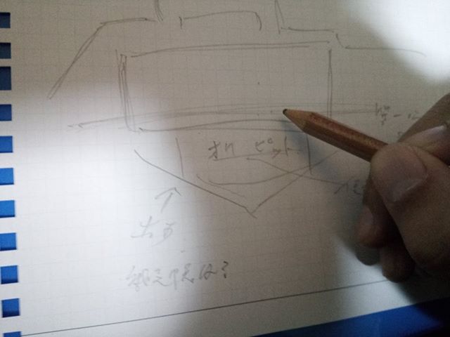 昨日の舞台打ち合わせをレビュー中。オケピット??スパイラルマシン??