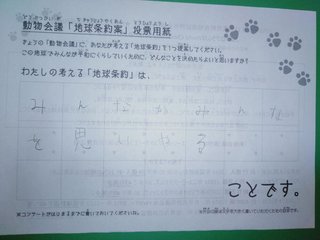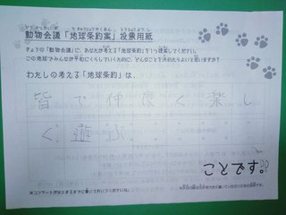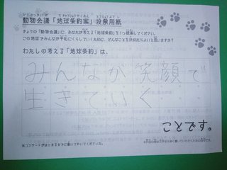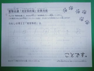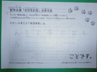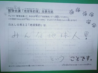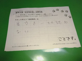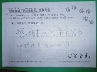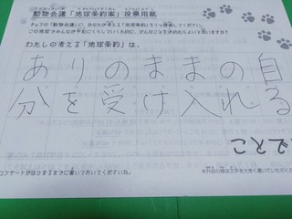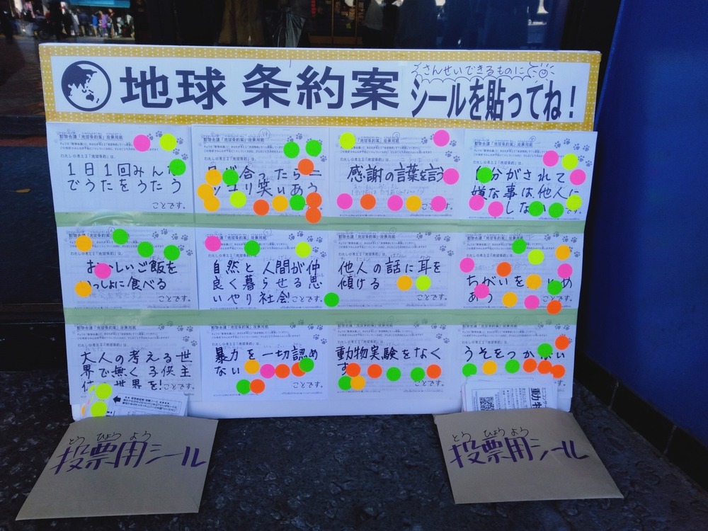 2019年12月、 東京文化会館キャノピー広場での公演に寄せられた地球条約案です。