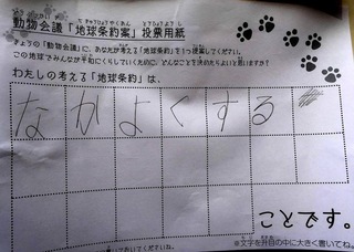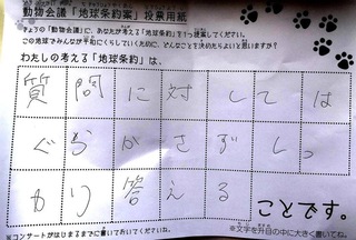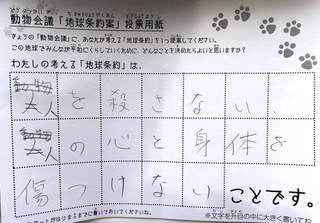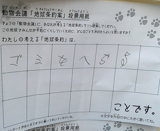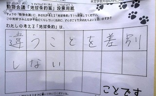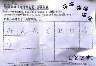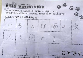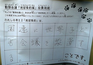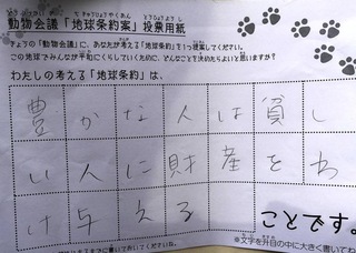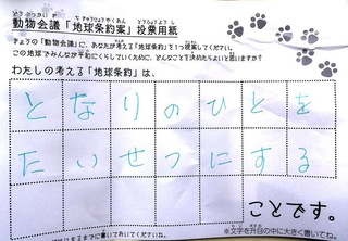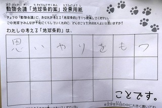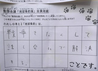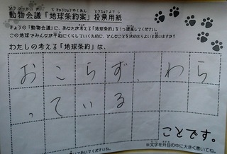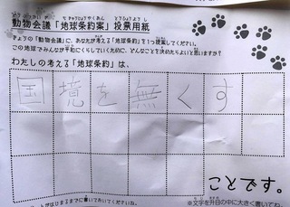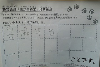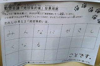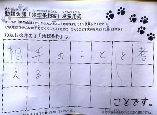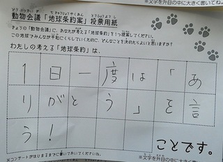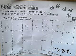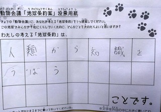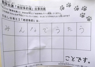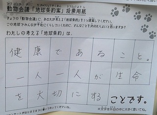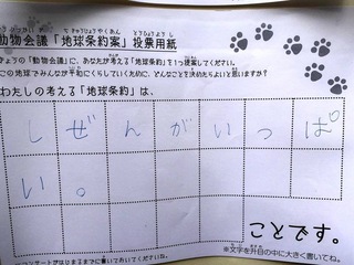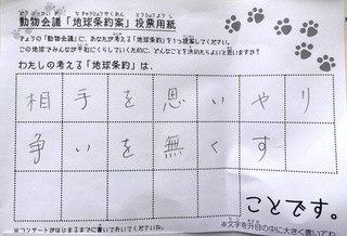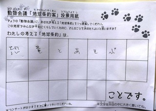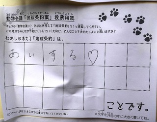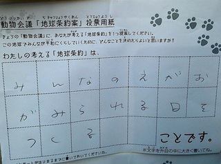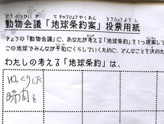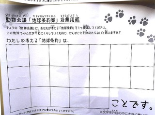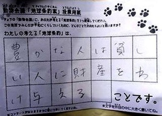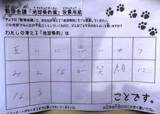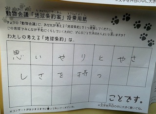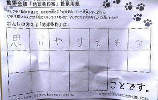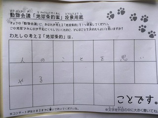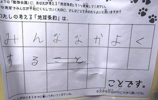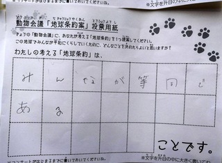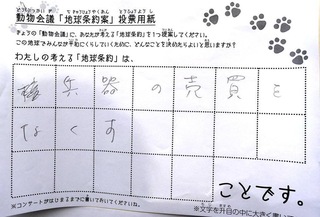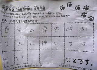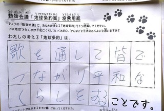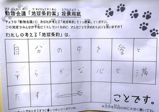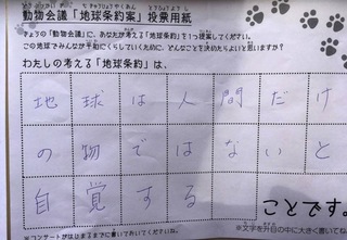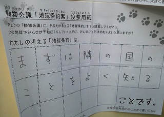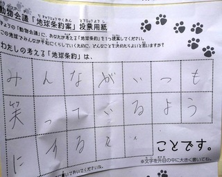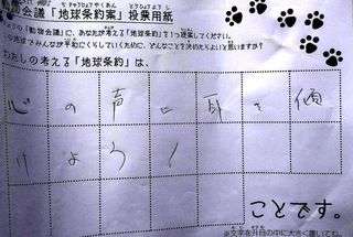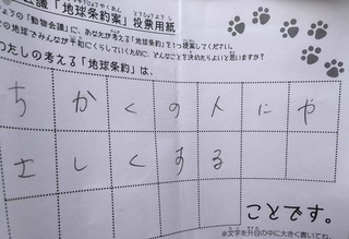 2017年12月、三鷹市芸術文化センター風のホールでの公演に寄せられた地球条約案です。