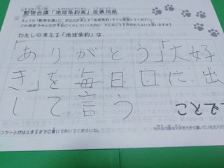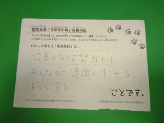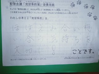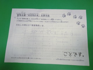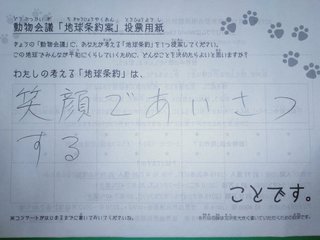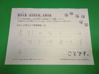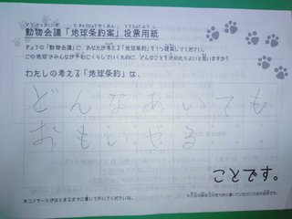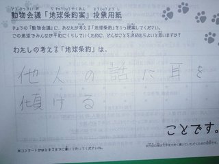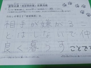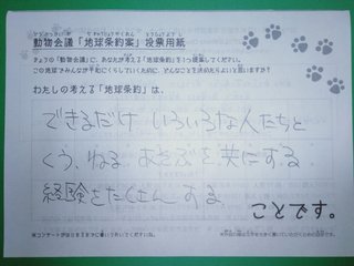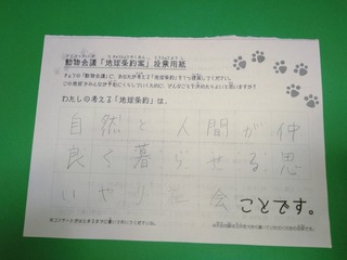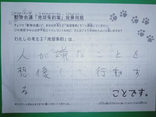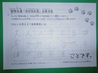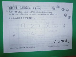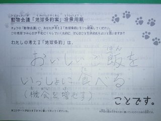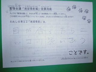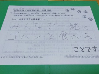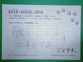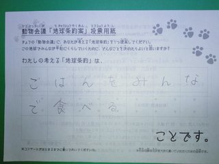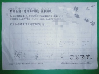 2019年12月、「ミニ・コンサート動物会議Flash!」に寄せられた地球条約案です。このミニ・コンサートは、東京都合唱連盟主催の野外合唱コンサートの一環で東京文化会館キャノピー広場にて開かれました。