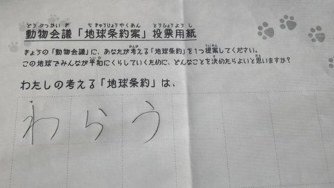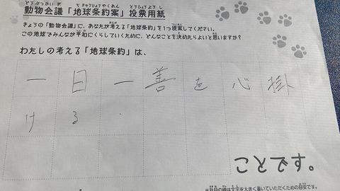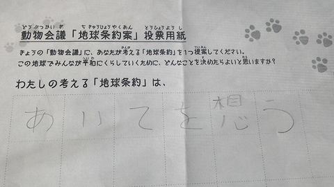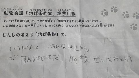 2016年3月、セシオン杉並にて開催された杉並こどもメッセでの公演に寄せられた地球条約案です。