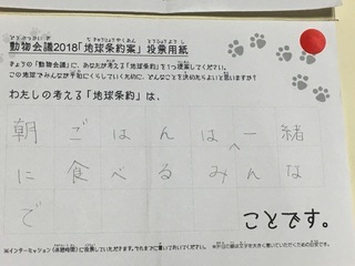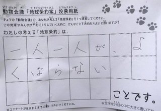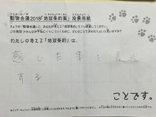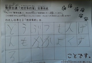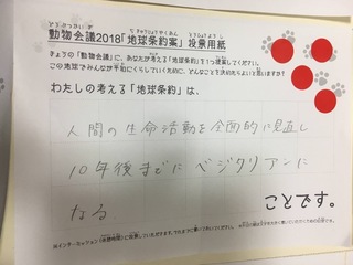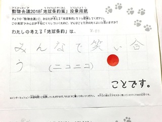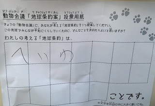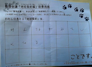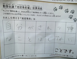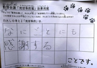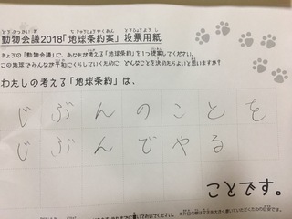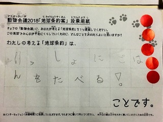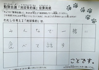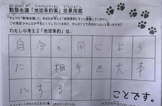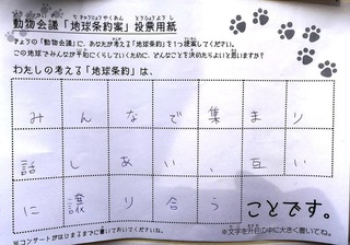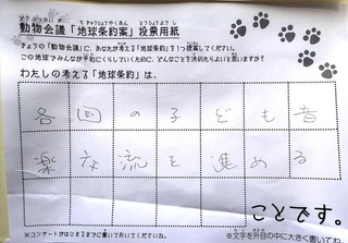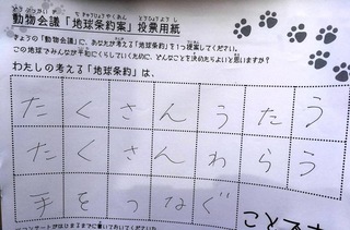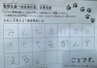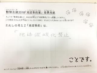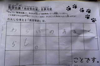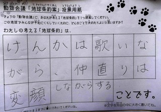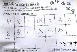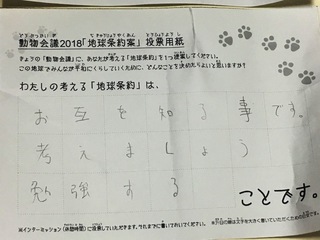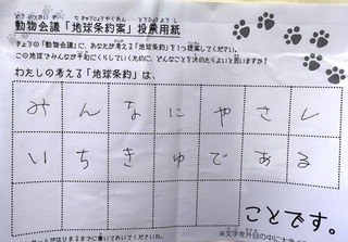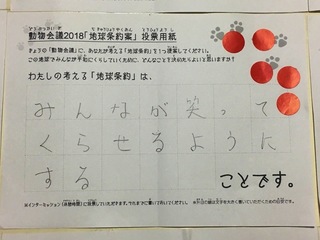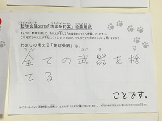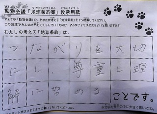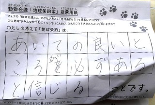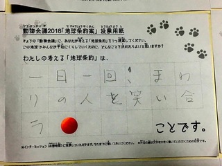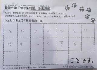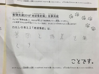 2017年12月、三鷹市芸術文化センター風のホールでの公演に寄せられた地球条約案です。