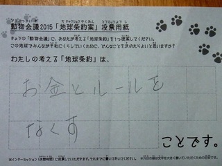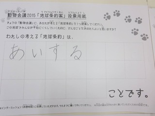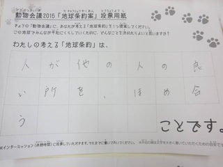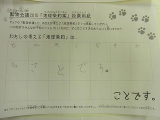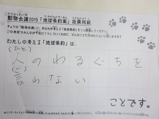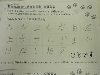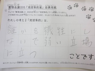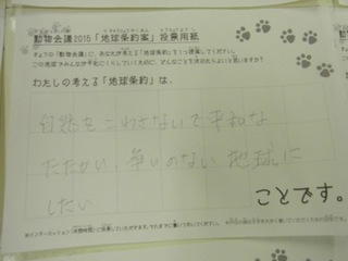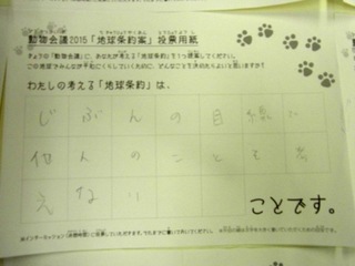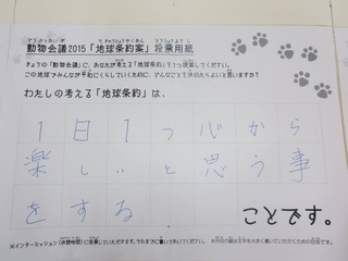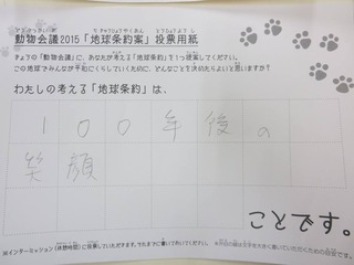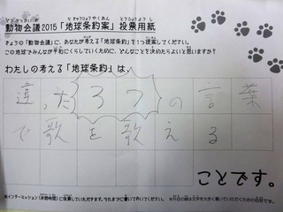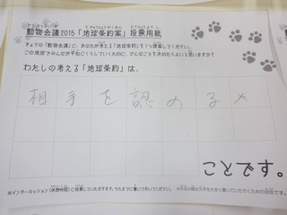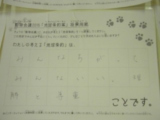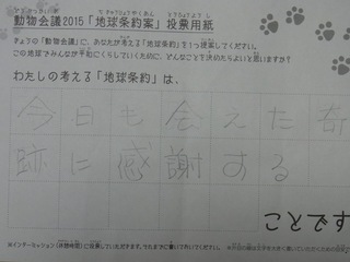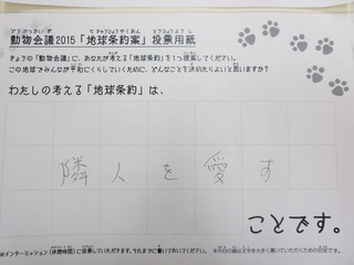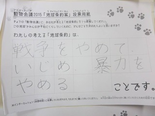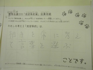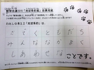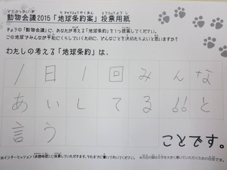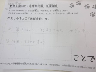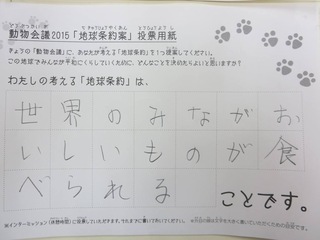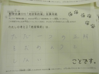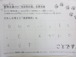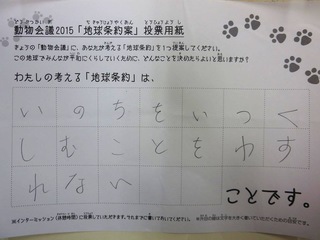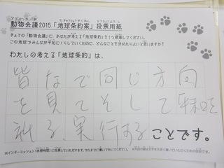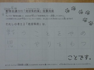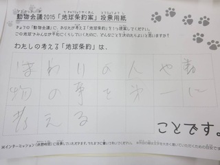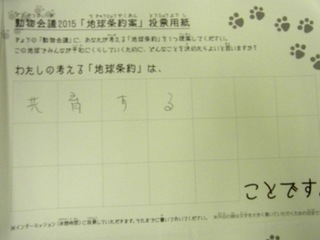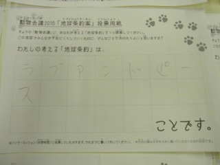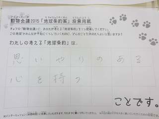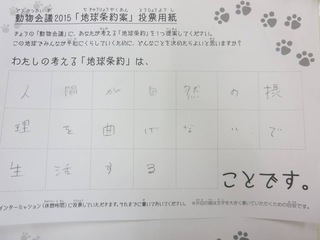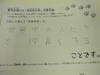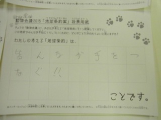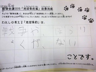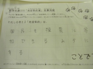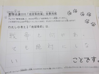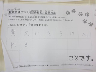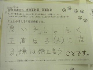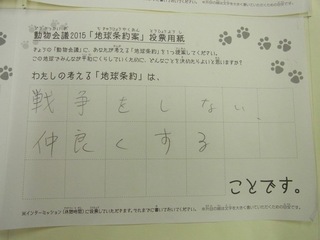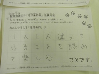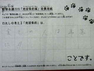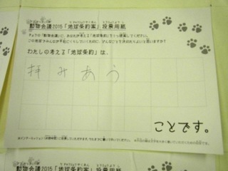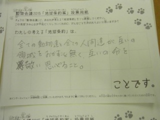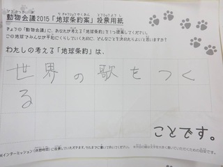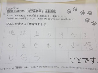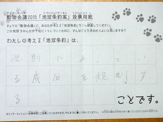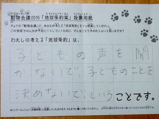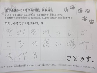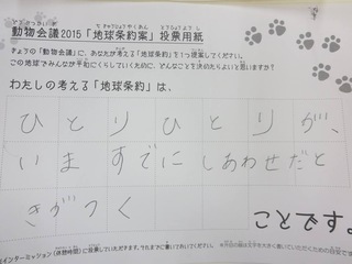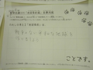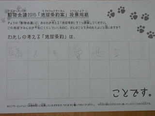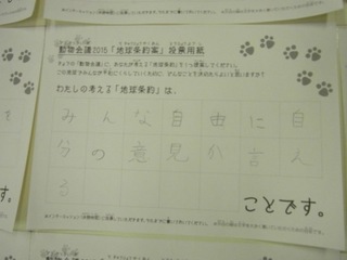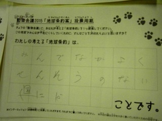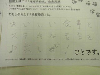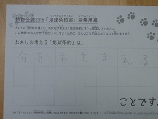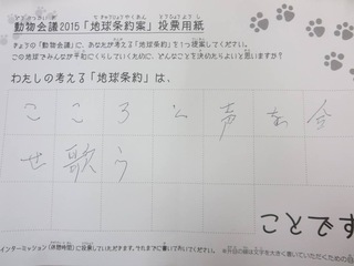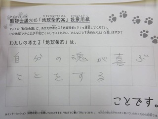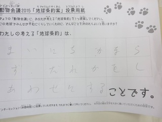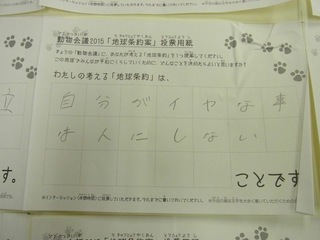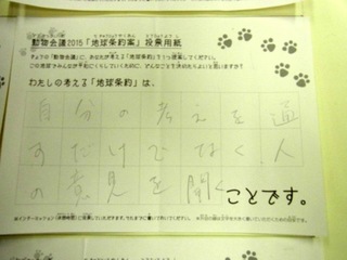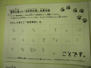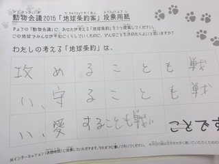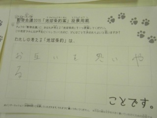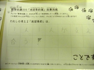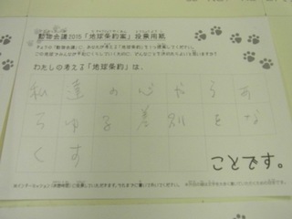 2015年11月、三鷹市芸術文化センター風のホールでの公演に寄せられた地球条約案です。