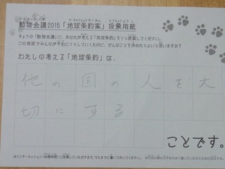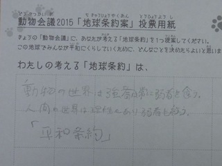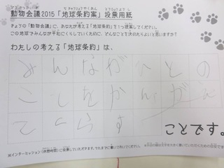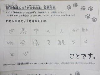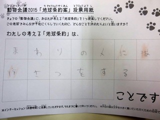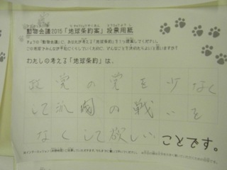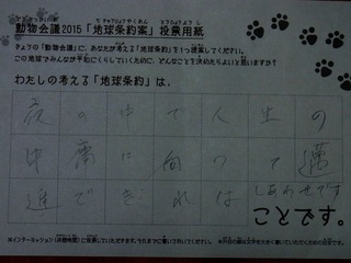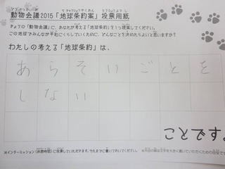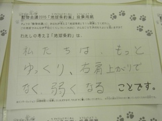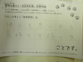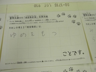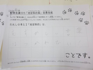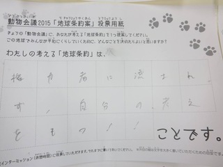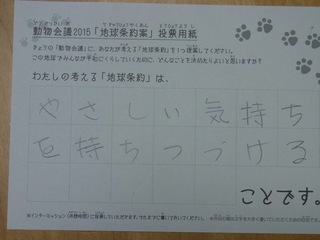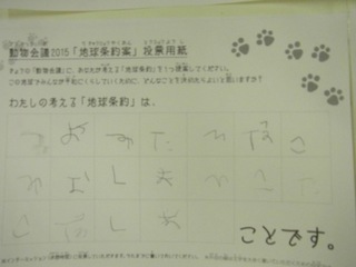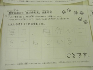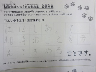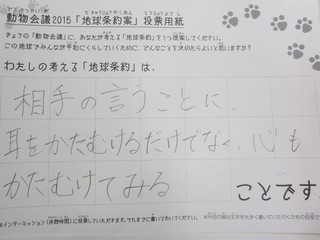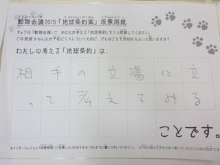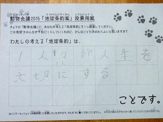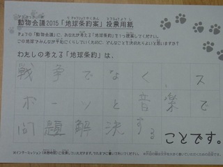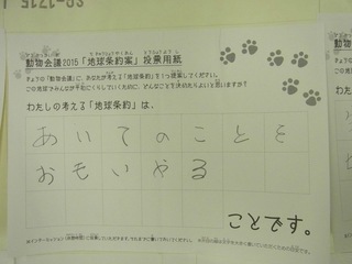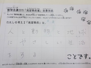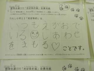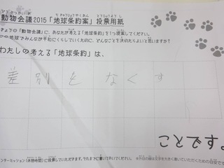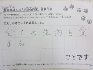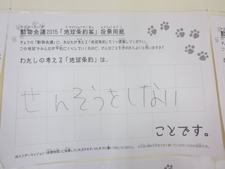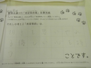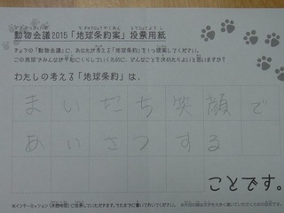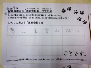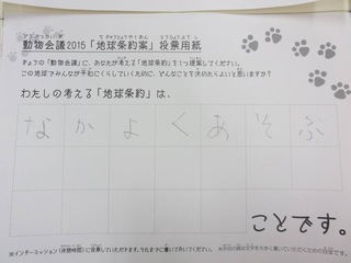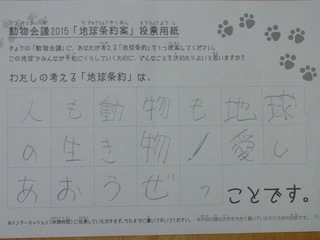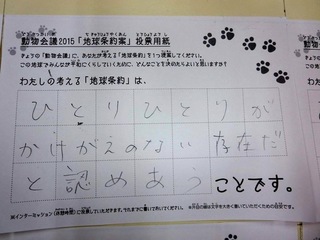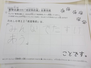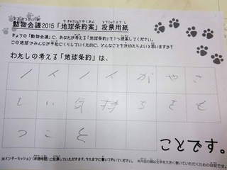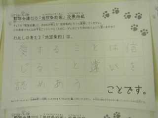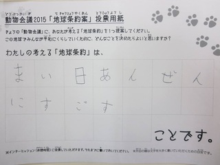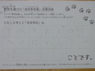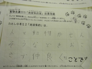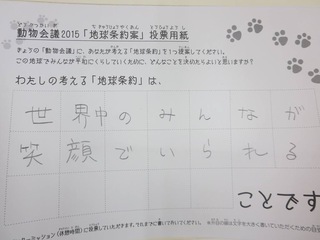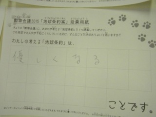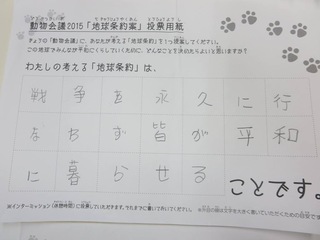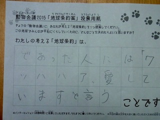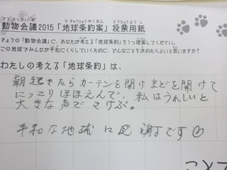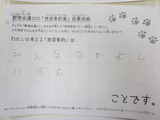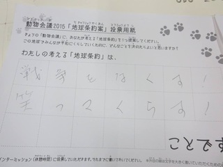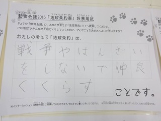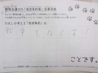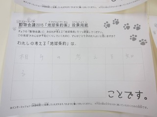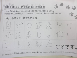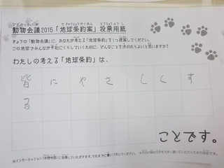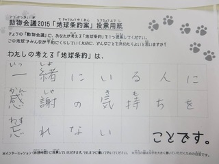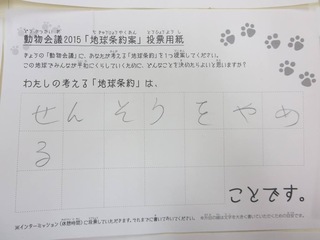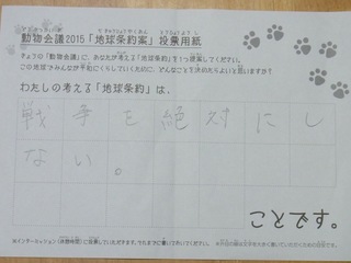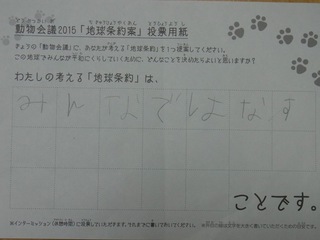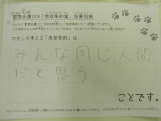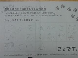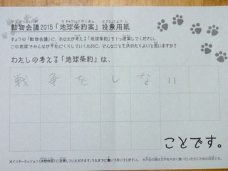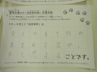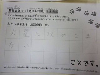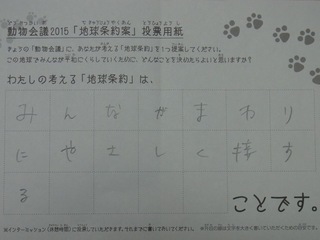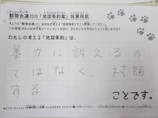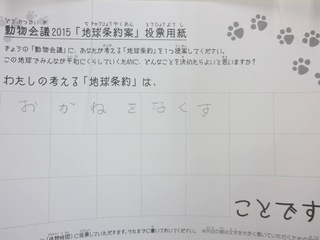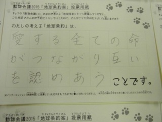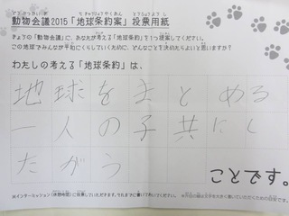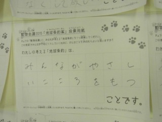 2015年11月、三鷹市芸術文化センター風のホールでの公演に寄せられた地球条約案です。