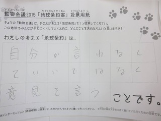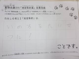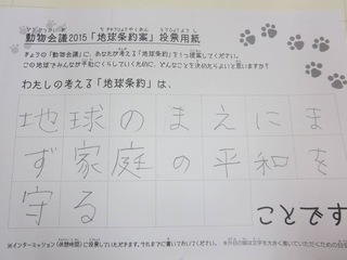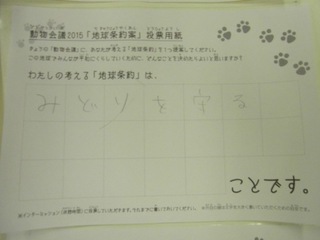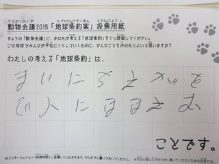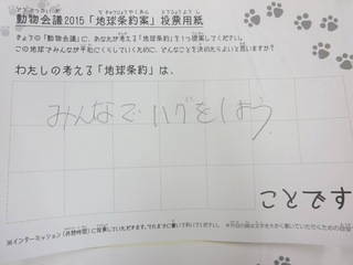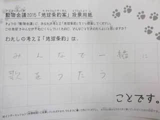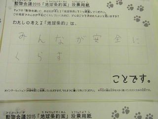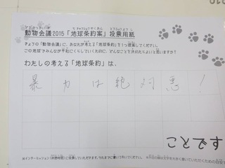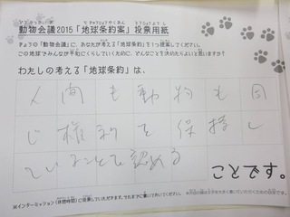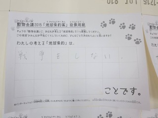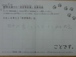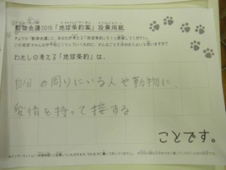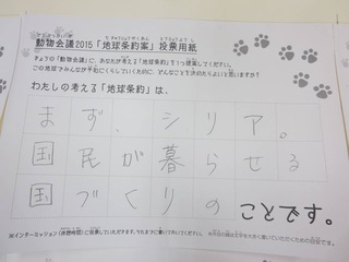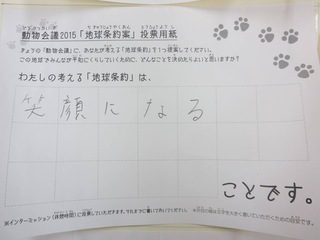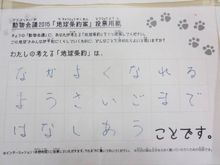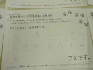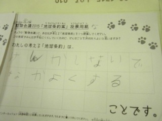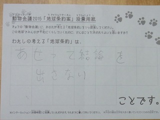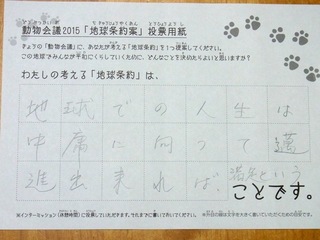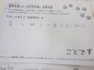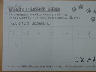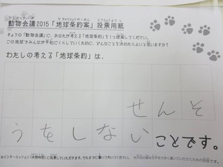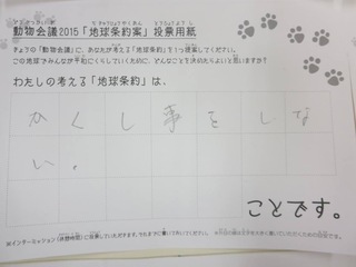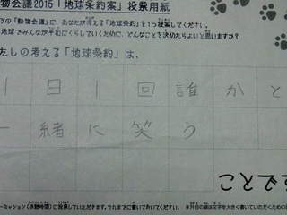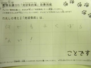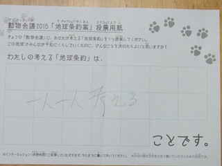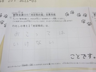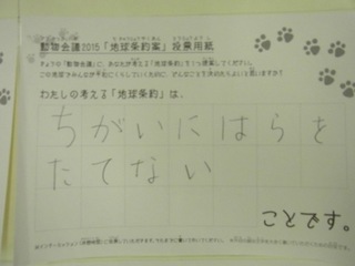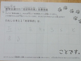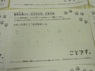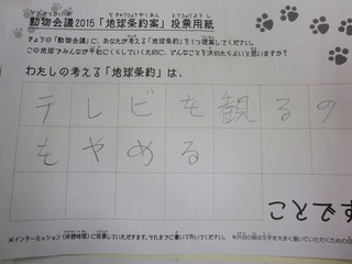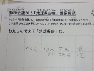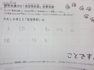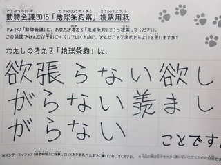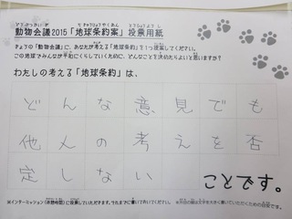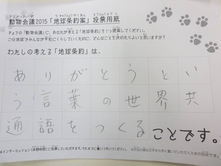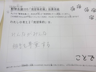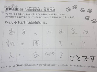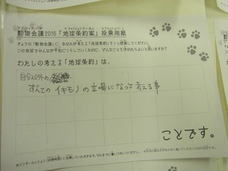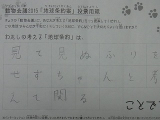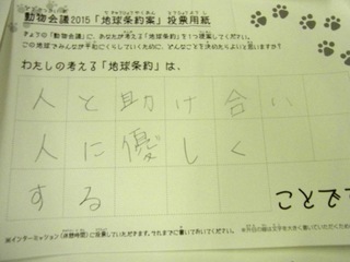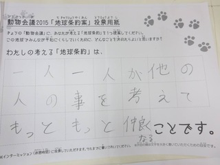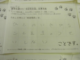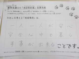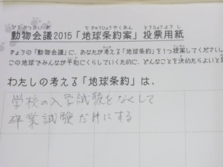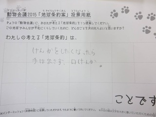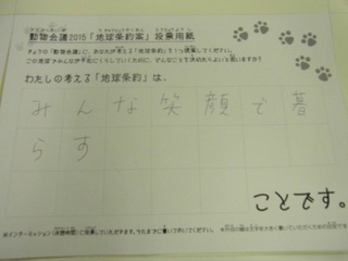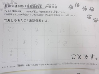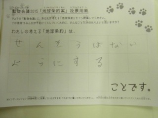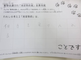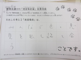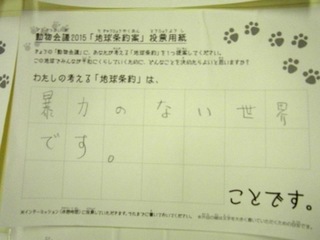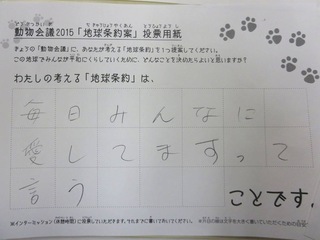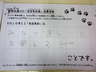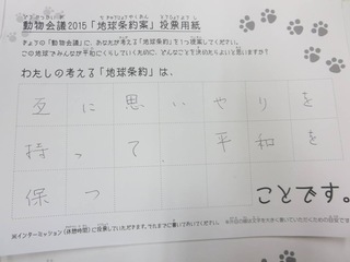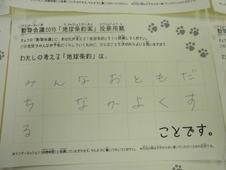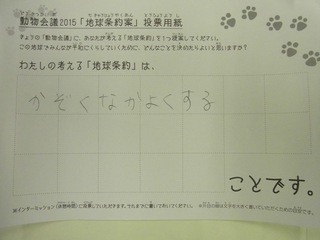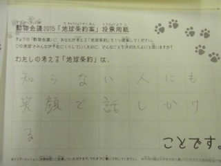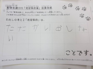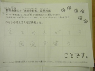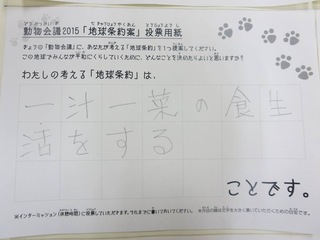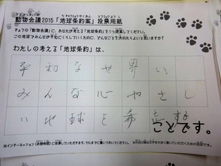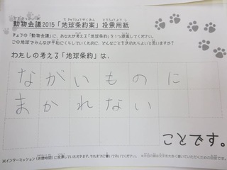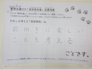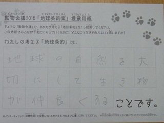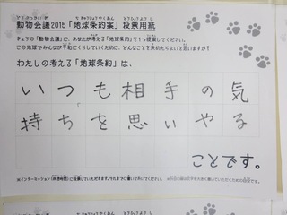 2015年11月、三鷹市芸術文化センター風のホールでの公演に寄せられた地球条約案です。