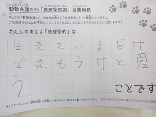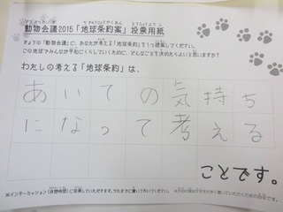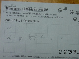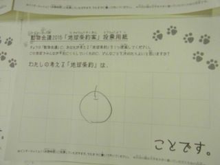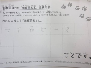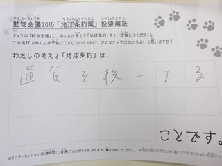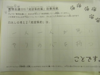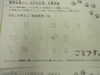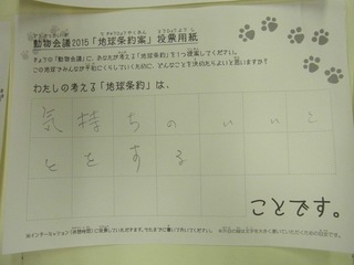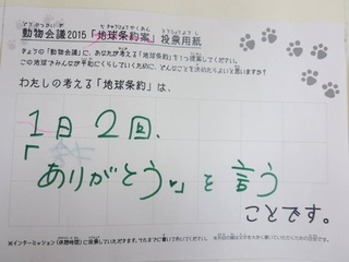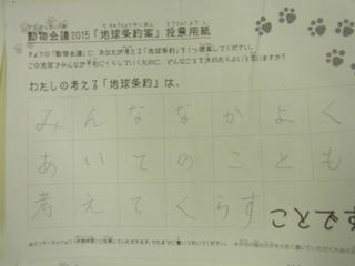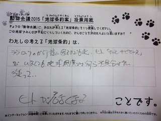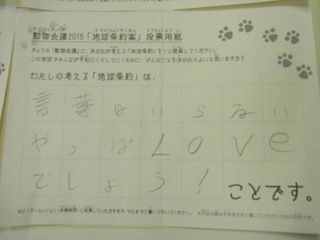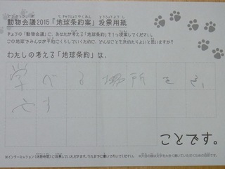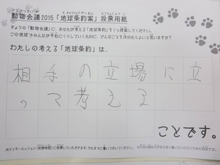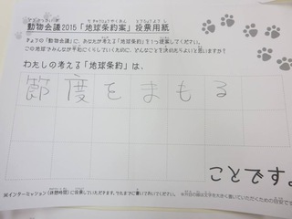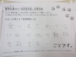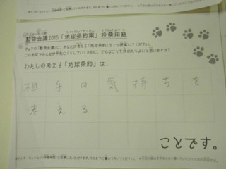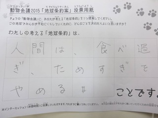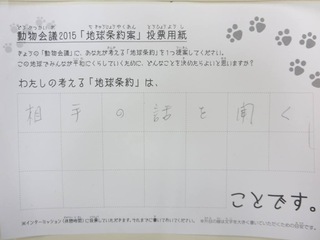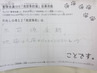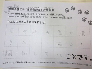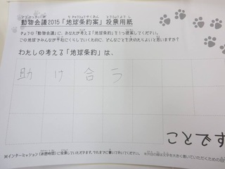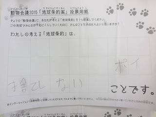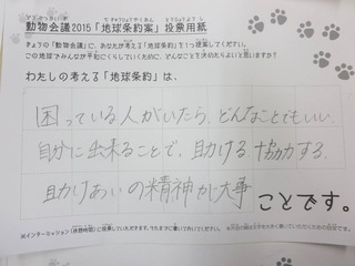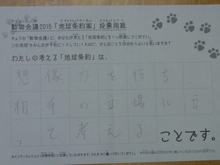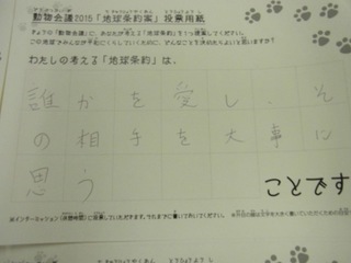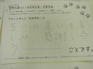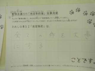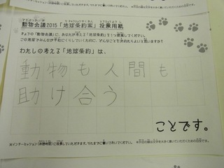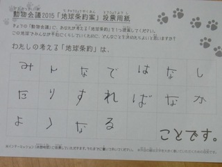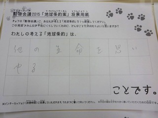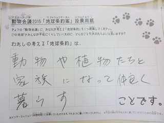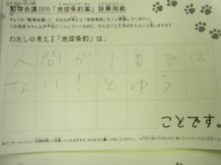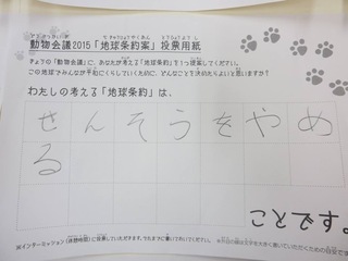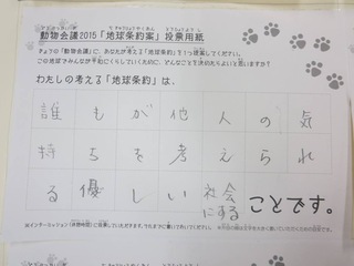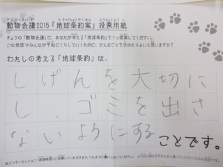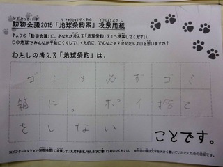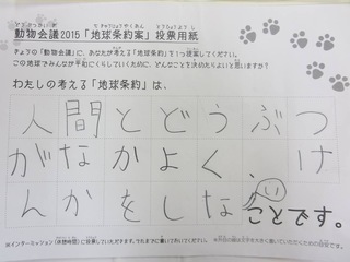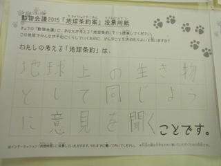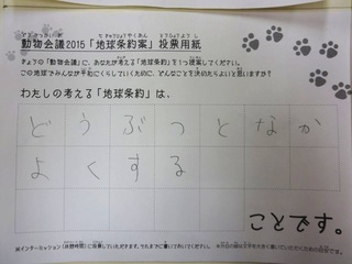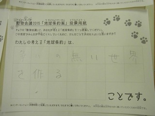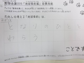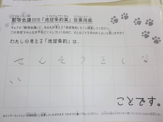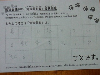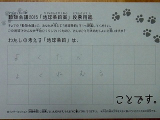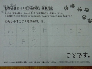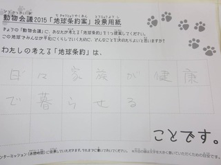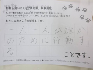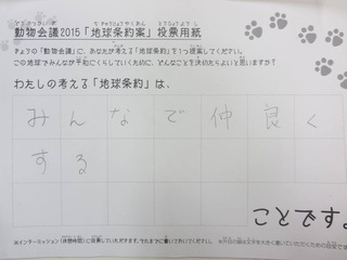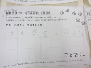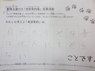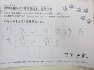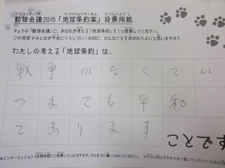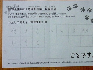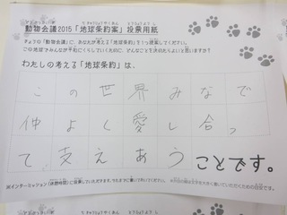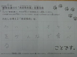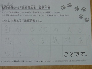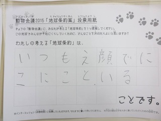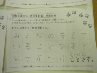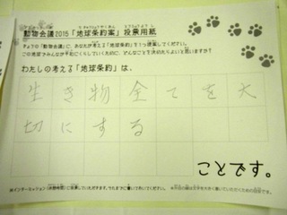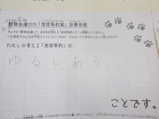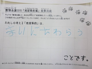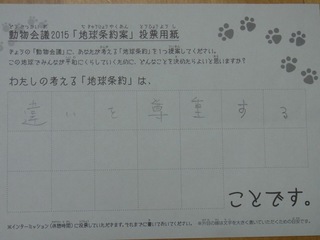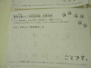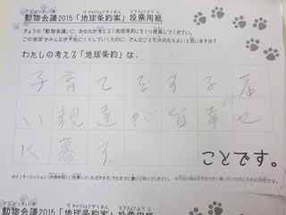 2015年11月、三鷹市芸術文化センター風のホールでの公演に寄せられた地球条約案です。