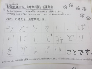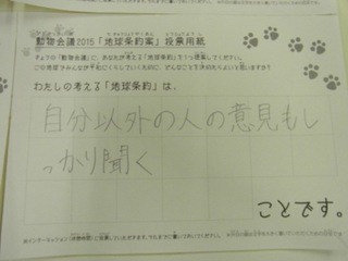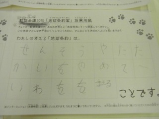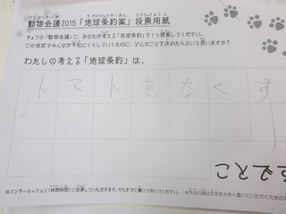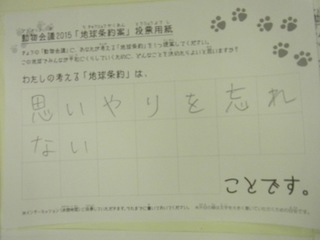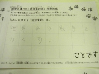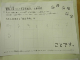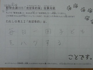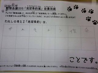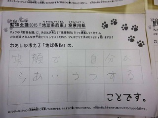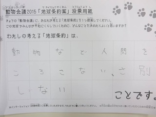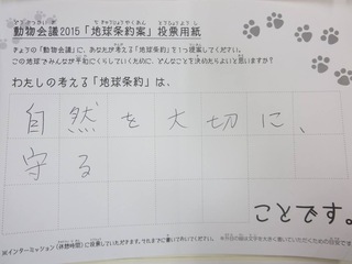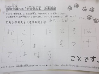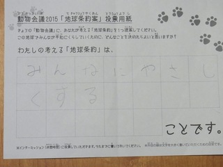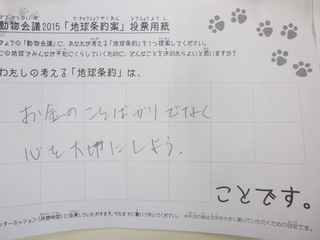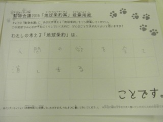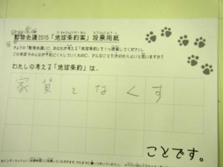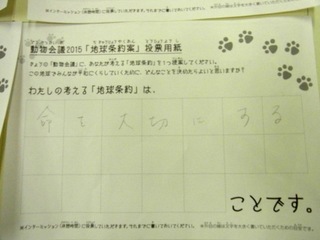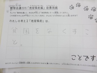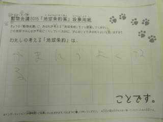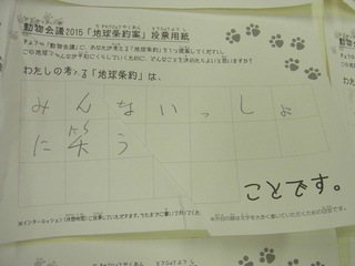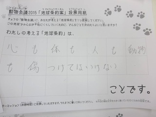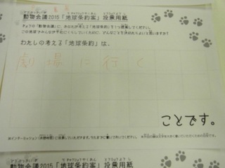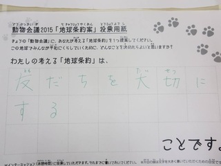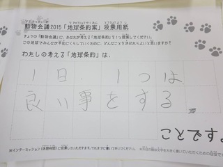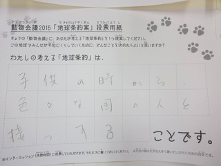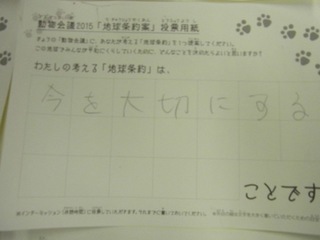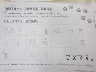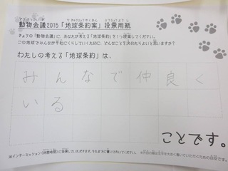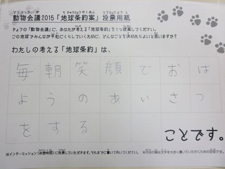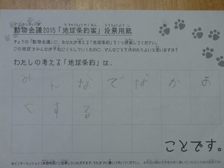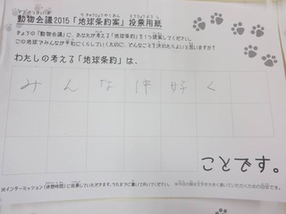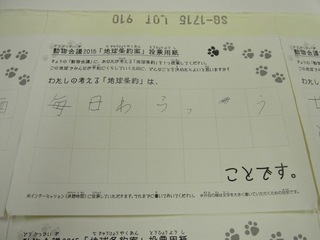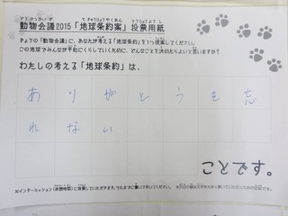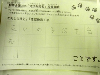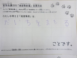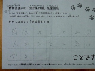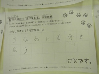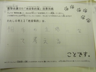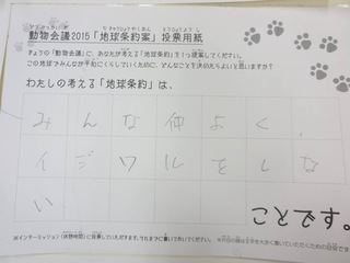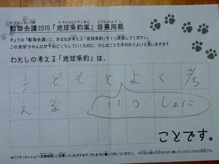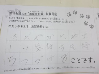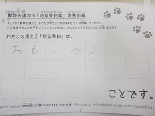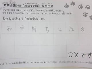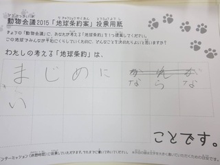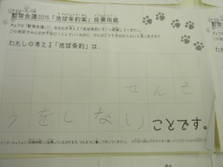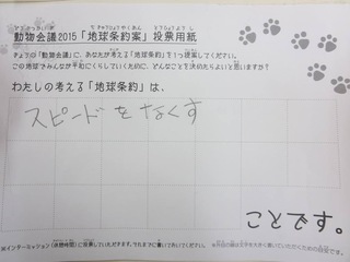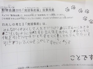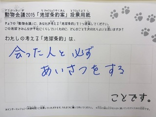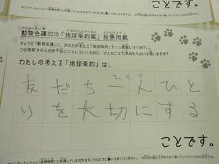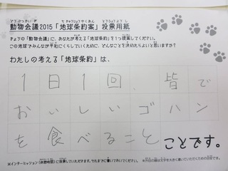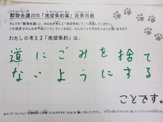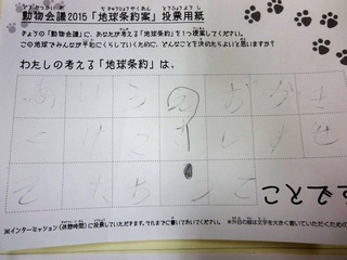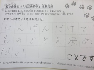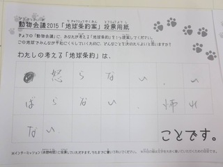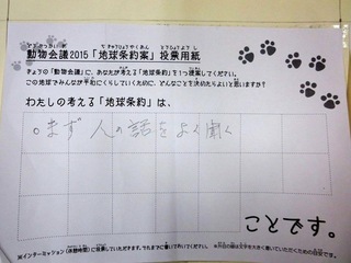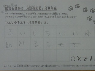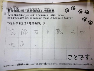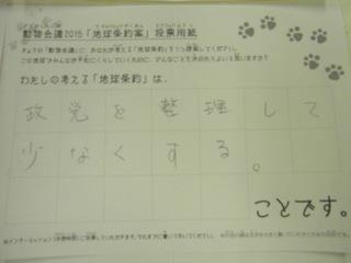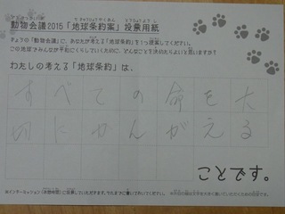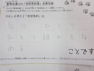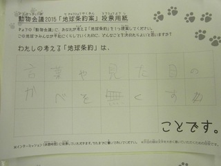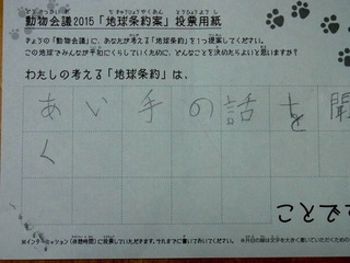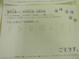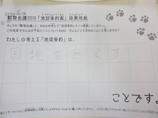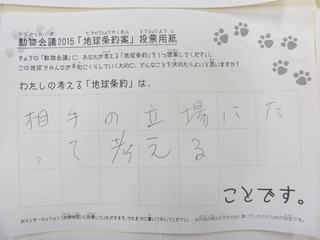 2015年11月、三鷹市芸術文化センター風のホールでの公演に寄せられた地球条約案です。